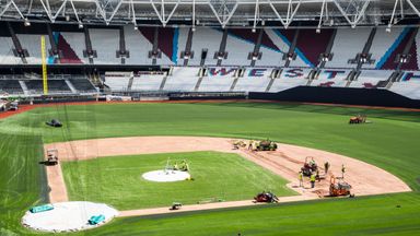 The London Stadium has been transformed into a Major League Baseball field in preparation for the series between the Boston Red Sox and New York Yankees.